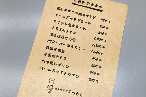 手書き風のメニューにも相性抜群です。