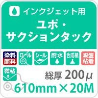 吸着タイプのユポ・サクションタック 糊なしで貼れる便利素材 ユポ・サクションタック 200ミクロン 610mm×20M インクジェット印刷 合成紙 ポスター印刷 パッケージ ラベル 商品POP シール作成 店舗装飾 マウスパッド 耐水性 耐久性 破れ難い 剥がし易い