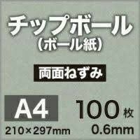 厚みのあるボール紙 パッケージや冊子表紙に チップボール<ボール紙> 両面ねずみ 0.6mm A4サイズ:100枚 カルトナージュ クラフト 紙器 台紙 芯材 保護用台紙 厚紙