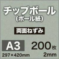 チップボール<ボール紙> 両面ねずみ 2mm A3サイズ:200枚 カルトナージュ クラフト 紙器 台紙 芯材 保護用台紙 厚紙