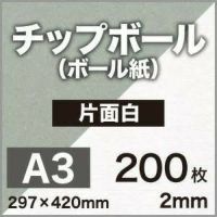 チップボール<ボール紙> 片面白 2mm A3サイズ:200枚 カルトナージュ クラフト 紙器 台紙 芯材 保護用台紙 厚紙