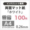 両面マット紙 「ホワイト」 0.26mm A4サイズ:100枚 インクジェット チラシ 高級 ペーパークラフト 結婚式 招待状 厚手 メニュー 透けない 裏写りしない