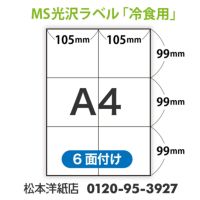 【現在特別価格提供中】MS光沢ラベル 「冷食用」(6面・表スリット) A4サイズ:1000枚