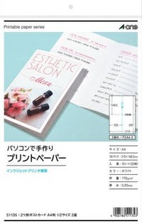 はがき用紙 自宅印刷の挨拶状に最適 エーワン マルチカード インクジェット専用 両面 2ツ折りポストカード白無地 2面 10シート 51135
