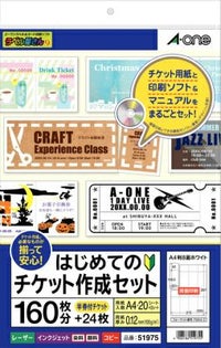切り離しやすいカード用紙 配布物に便利 【廃盤・販売終了】エーワン はじめてのチケット作成セット 51975
