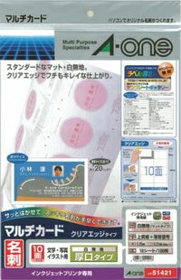 インクジェット専用名刺用紙 鮮明印刷に最適 【廃番・後継品あり51811】エーワン マルチカード 名刺用紙 インクジェット専用 片面 クリアエッジ 白無地 厚口 10面 10シート 51421