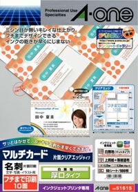 インクジェット専用名刺用紙 鮮明印刷に最適 【廃盤・販売終了】エーワン マルチカード 名刺用紙 クリアエッジ 10面 厚口 50シート 51615