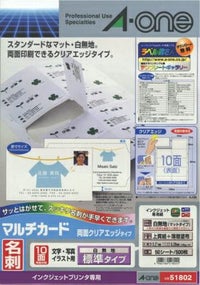 インクジェット専用名刺用紙 鮮明印刷に最適 エーワン マルチカード 名刺用紙 インクジェット専用 両面 クリアエッジ 標準 白無地 10面 50シート 51802