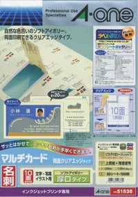 インクジェット専用名刺用紙 鮮明印刷に最適 エーワン マルチカード 名刺用紙 クリアエッジ 厚口 ソフトアイボリー 10面 50シート 51836