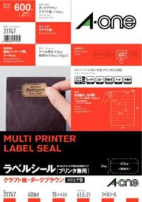 エーワン ラベルシール「プリンタ兼用」 クラフト紙・ダークブラウン A4 40面 スクエア型 31747