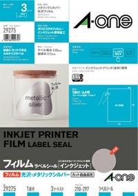 インクジェット用ラベル&吸着フィルム 糊なしで貼れる便利仕様 エーワン ラベルシール[インクジェット] メタリックシルバー フィルムラベル A4ノーカット3シート 29275