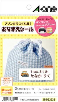 【廃盤・販売終了】エーワン 布プリ アイロン接着タイプ はがきサイズ ネーム用8面3シート 33533