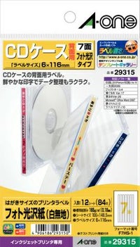 使いやすいミニラベル 店舗運用に最適 【廃盤】エーワン はがきサイズのプリンタラベル[インクジェット] フォト光沢CDケース背面用7面12シート 29315