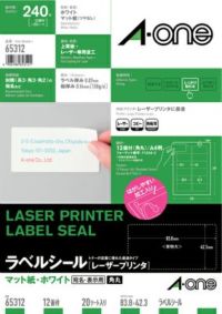 エーワン ラベルシール[レーザープリンタ] マット紙 A4 12面 四辺余白付 角丸 20シート入 65312