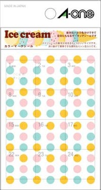 薄くて書きやすい手帳用ラベル カスタムに最適 エーワン 手帳用シール カラーマークシール アイスクリーム 05265