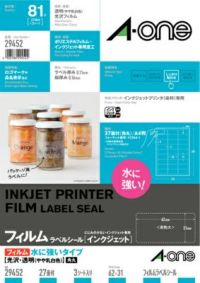 エーワン ラベルシール水に強いタイプ 光沢フィルム・透明(やや乳白色) A4 27面 3シート入 29452