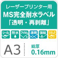 3. 【在庫限り→自己吸着に変更】MS完全耐水ラベル 「透明・再剥離」 A3サイズ:50枚