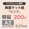 用途広がるベーシックな両面紙 名刺からパンフまで対応 両面マット紙 ピンク 0.27mm A2サイズ:200枚 (送料無料) インクジェット チラシ 高級 ペーパークラフト 結婚式 招待状 桃色 厚手 透けない