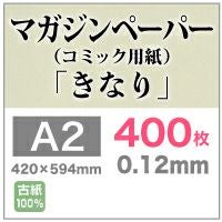 軽量のマガジン紙 雑誌やコミック制作に最適 マガジンペーパー(コミック用紙) 0.12mm A2サイズ:400枚 きなり レトロ感 ZINE フライヤー メニュー表 きなり色 古紙パルプ100 ザラザラした質感 週刊誌用紙 プリンター印刷