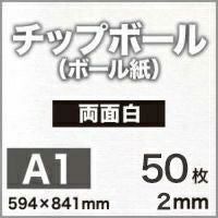 厚みのあるボール紙 パッケージや冊子表紙に チップボール<ボール紙> 両面白 2mm A1サイズ:50枚 カルトナージュ クラフト 紙器 台紙 芯材 保護用台紙 厚紙