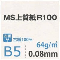 古紙配合の環境配慮上質紙 エコ印刷や社内資料に MS上質紙R100 64g/平米 B5サイズ:2500枚 薄手 コピー用紙 インクジェット対応 レーザープリンター対応 パンフレット カタログ 社内文書 ミシン目加工可能 請求書 納品書