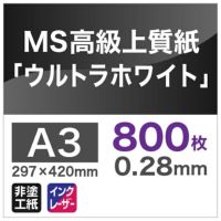 高白色の上質紙 企画書や資料に MS高級上質紙 「ウルトラホワイト」 256g平米 A3サイズ :800枚