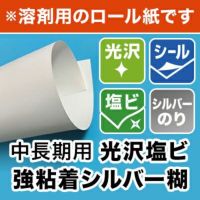 耐久性と発色の両立 中長期掲示に便利 【溶剤用】中長期用 光沢塩ビ 強粘着シルバー糊 1370mm×50M