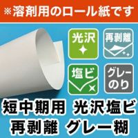 短期~中期の看板に使いやすい溶剤ロール 【溶剤用】短中期用 光沢塩ビ 再剥離 グレー糊 1370mm×50M