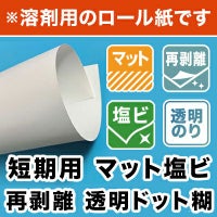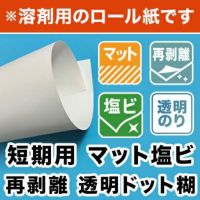 イベント用に使いやすい短期メディア 【溶剤用】短期用 マット塩ビ 再剥離 透明糊ドット糊 1370mm×50M