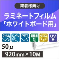 メモや掲示に使えるホワイトボード化フィルム ホワイトボード用 ラミネートフィルム(業務用ロール) PET グロス UV効果 厚み50μ 920mm×10M