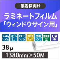 ウィンドウ用ラミネート 透明で窓面の保護に最適 ウィンドウサイン用 ラミネートフィルム(業務用ロール) 高透明PET グロス UV効果 厚み38μ 1380mm×50M