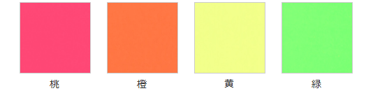 印象的な発色で、POPや装飾用途にも最適です。カラーは桃・橙・黄・緑の4色展開からお選びいただけます。
